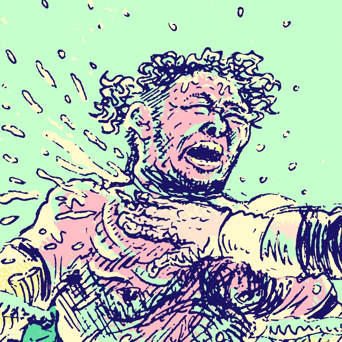 "M.O.T.W. #103: Go Shiozaki & Jun Akiyama vs. Naomichi Marufuji & Takashi Sugiura (Go 20th Anniversary Match)" - ink & digital illustration